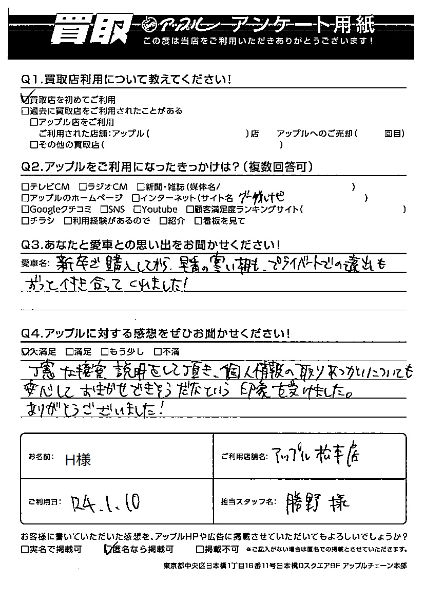 丁寧な接客、説明をして頂き、個人情報の取りあつかいについても安心してお任せできそうだなという印象を受けました。