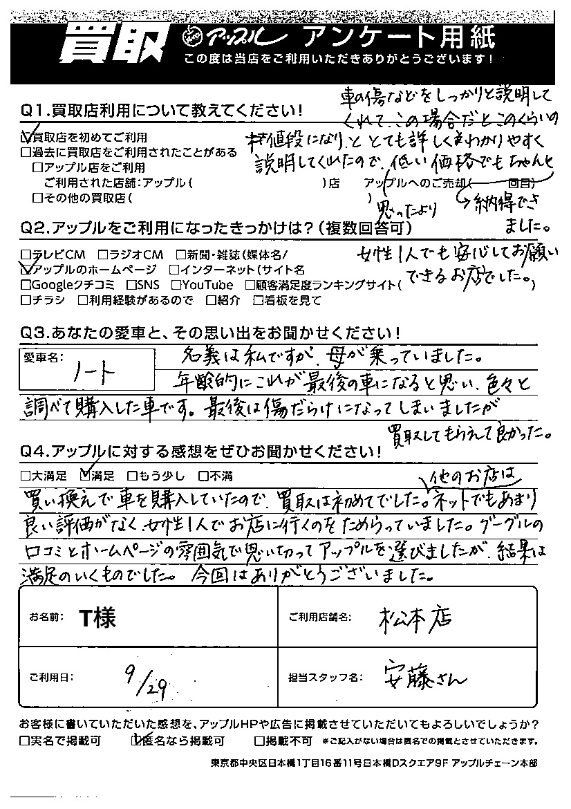 T様 車名:日産 ノート