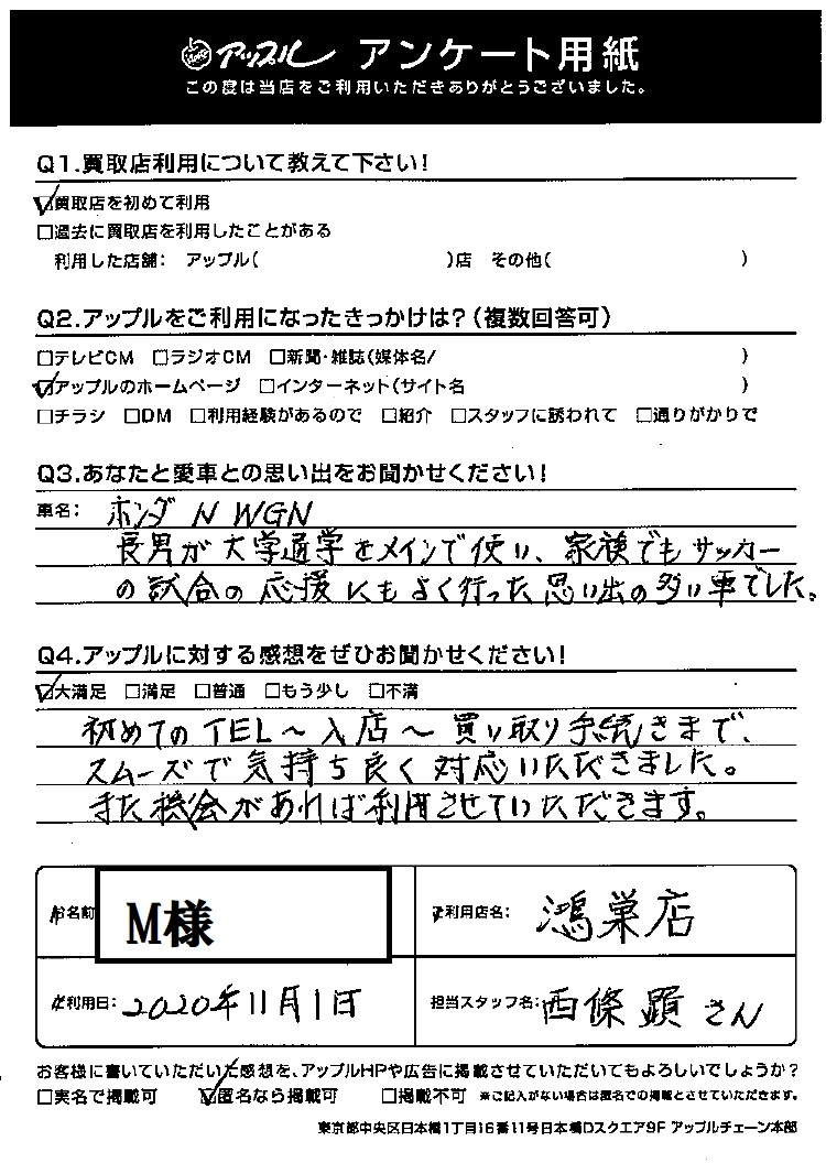 長男が大学通学をメインで使い、家族でもサッカーの試合の応援にもよく行った思い出の多い車でした。