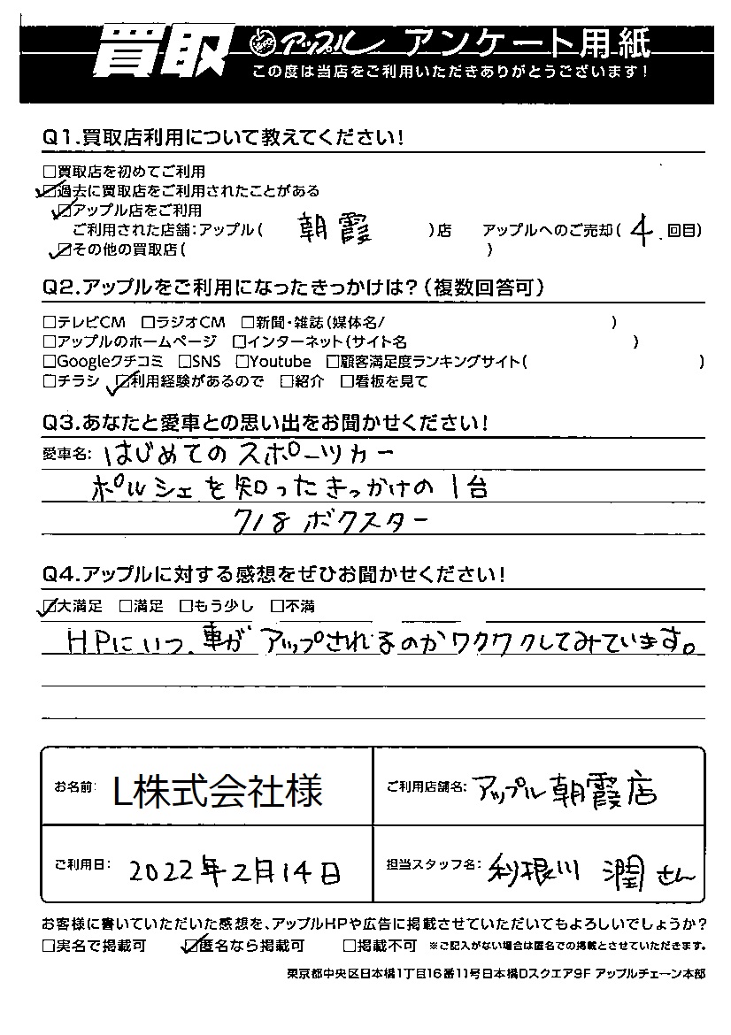 L株式会社様 車名:ポルシェ 718ボクスター