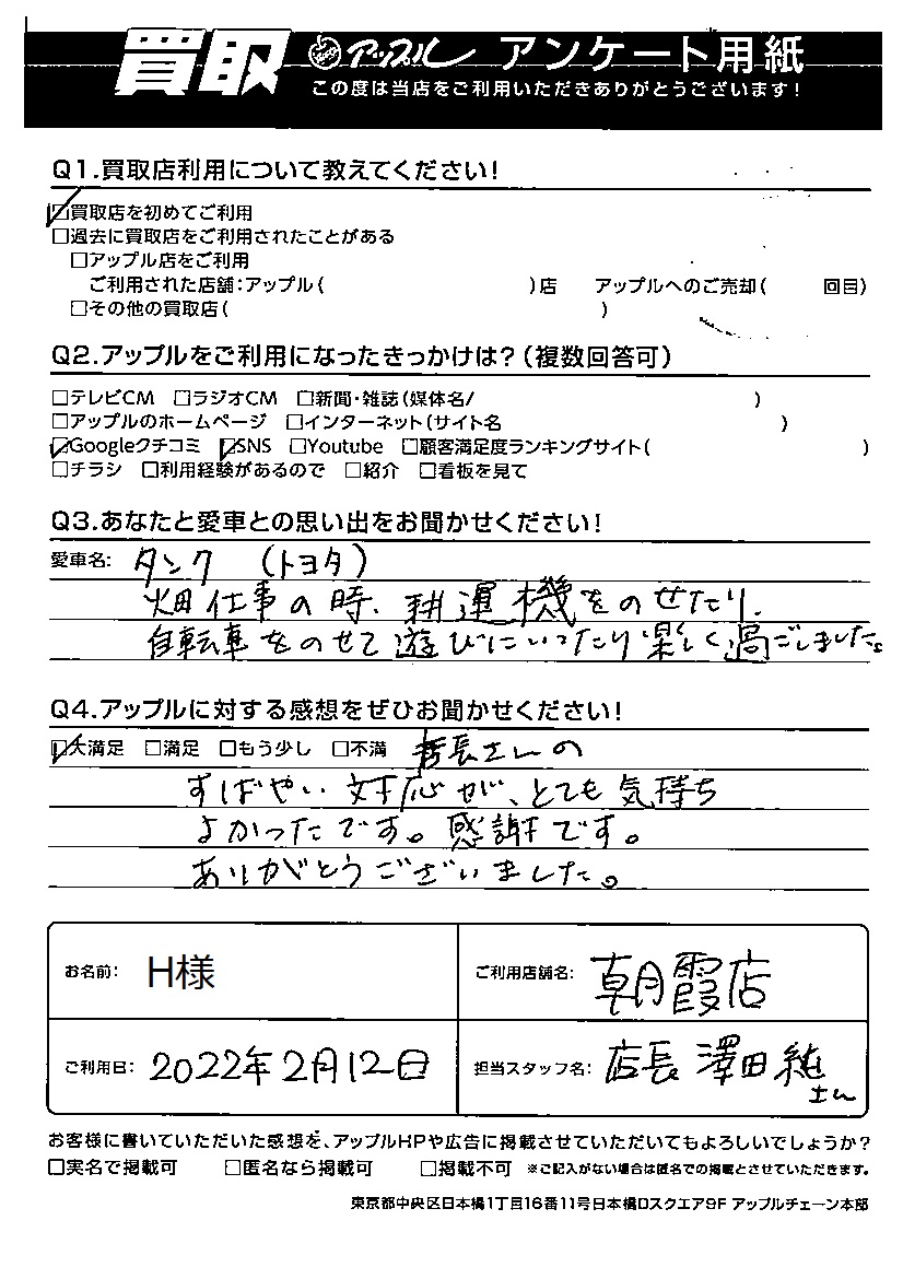 店長さんのすばやい対応がとても気持ちよかったです。感謝です。