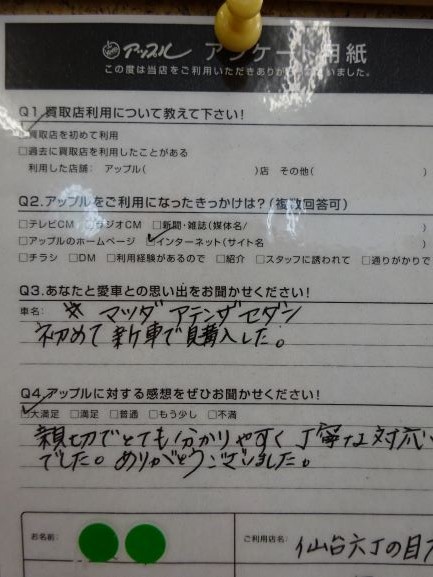 宮城県 匿名希望様 車名:マツダ アテンザ