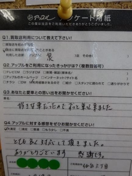 A.とても良く対応して頂きました。ありがとうございます 感謝です。