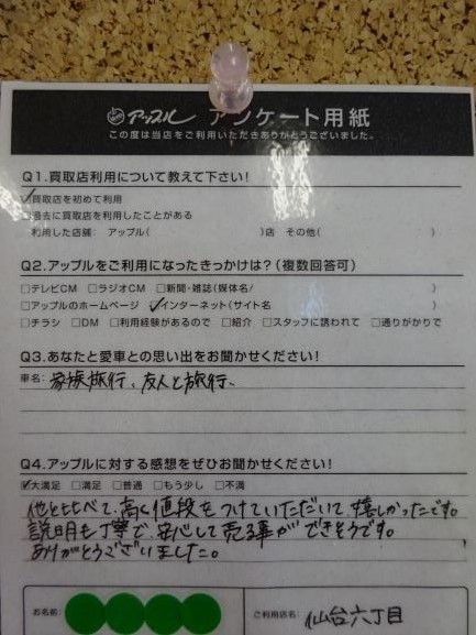 A.他と比べて高く値段をつけていただいて嬉しかったです。説明も丁寧で安心して売る事ができそうです。ありがとうございました。