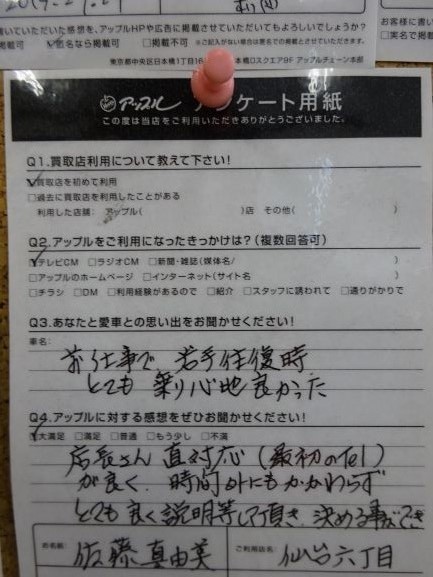 A.店長さん直対応(最初のTEL)が良く時間外にもかかわらずとても良く説明等して頂き、決めることができました。