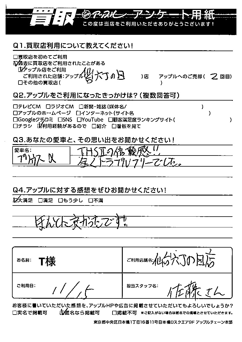 THSⅡの信頼感!!全くトラブルフリーでした。