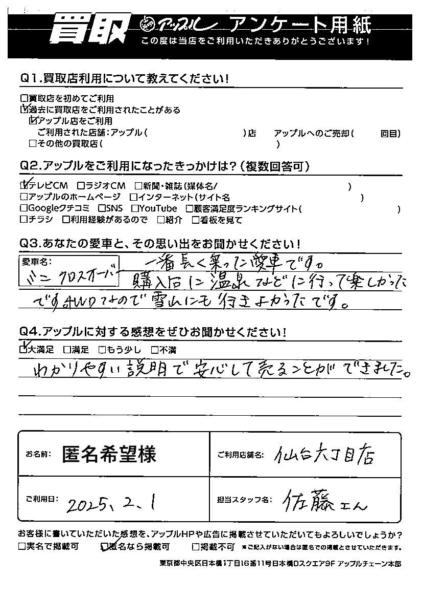匿名希望様 車名:ミニ ミニクロスオーバー