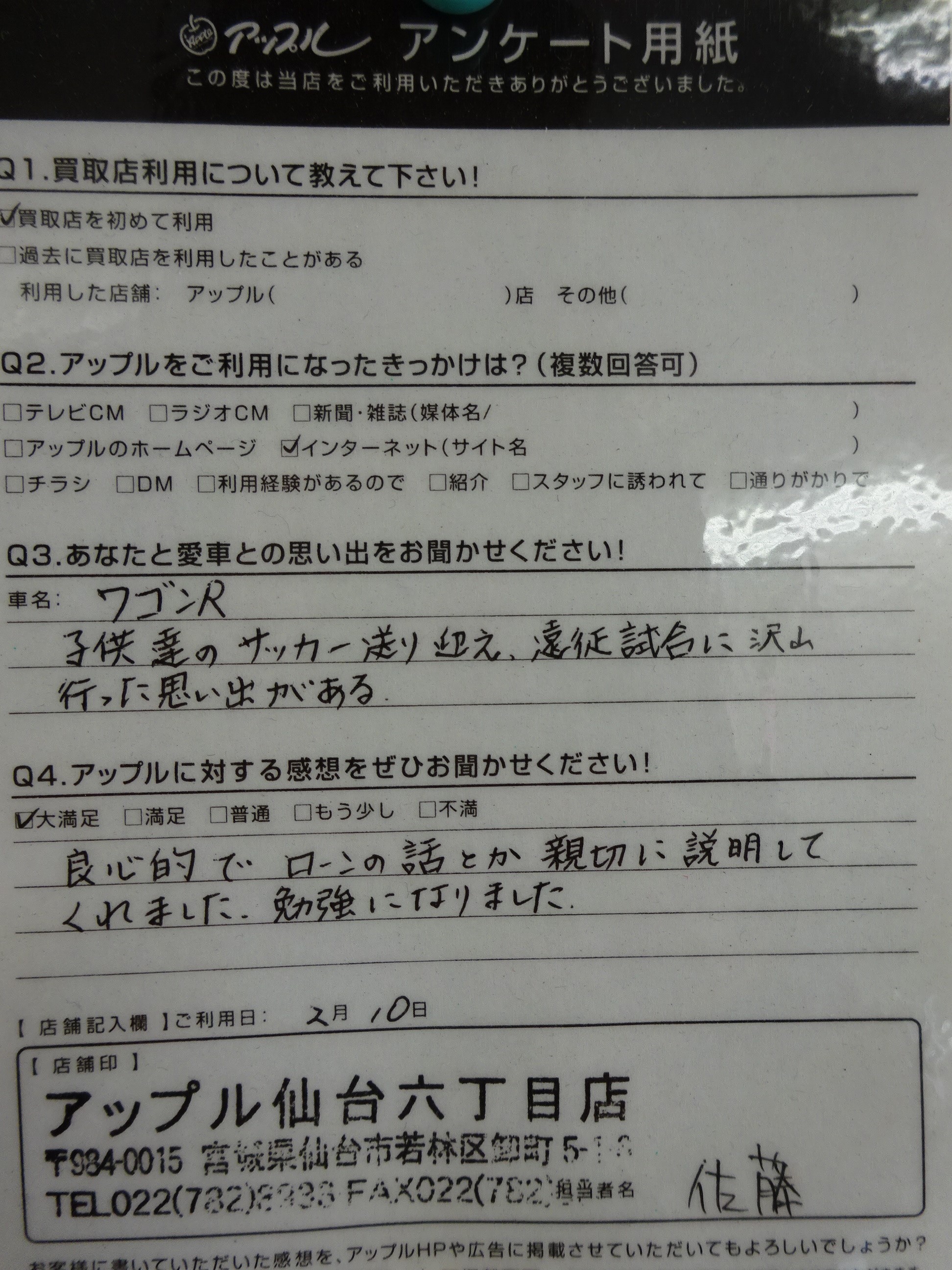 宮城県 匿名希望様 車名:スズキ ワゴンR