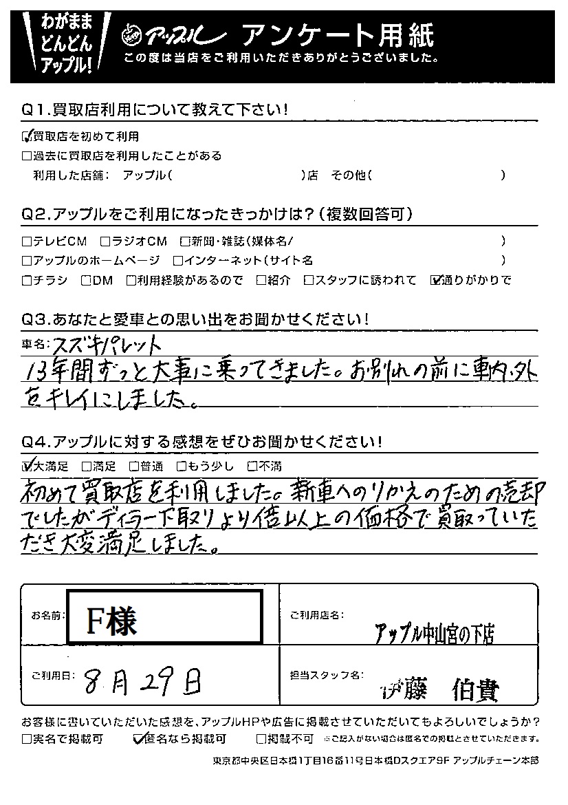 F様 車名:スズキ パレット