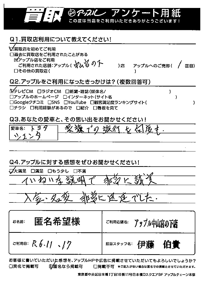 ご利用日:2024/11/17 匿名希望 様