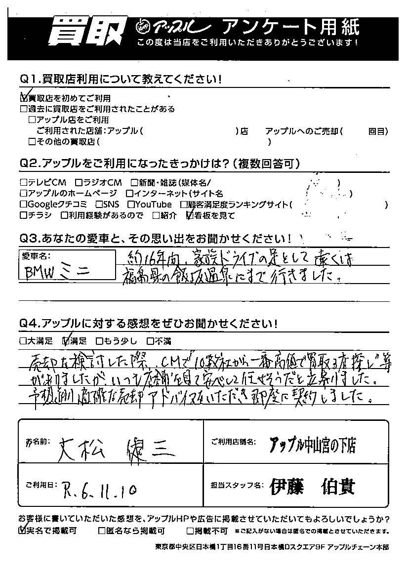 O様 車名:ミニ ミニ