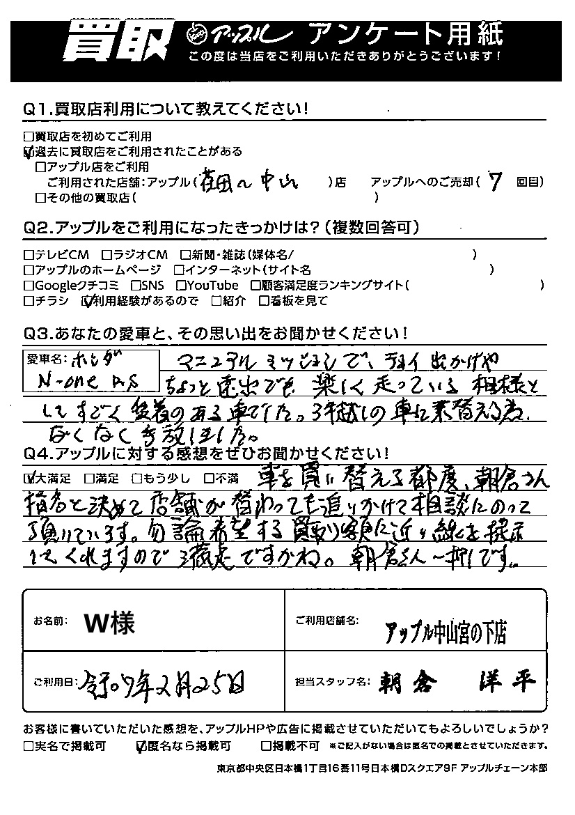 ご利用日:2025/02/25 W 様
