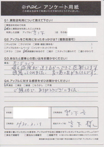 お車のご相談・ 査定だけでもOK! カンタン 入力 30秒 アップルがブランド買取始めました! お電話でも受付中! 受付時間10:00 ~ 19:00(最終受付は18:30となります) 045-929-2211 お車のご相談・ 査定だけでもOK! カンタン 入力 30秒 アップルがブランド買取始めました! お電話でも受付中! 受付時間10:00 ~ 19:00(最終受付は18:30となります) 045-929-2211 アップルがブランド買取始めました! お電話でも受付中! 受付時間10:00 ~ 19:00(最終受付は18:30となります) 045-929-2211 店舗情報 在庫車 スタッフ紹介 ブログ お客様の声 キャンペーン お得 無料査定 click お客様の声 ご記入日: 2018/03/19 S様 ご親切で、ありがとうございました。 前へ 次へ お客様の声一覧を見る