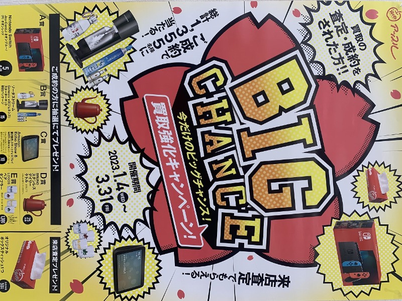 そしてそして!2023年1月4日~3月31日まで買取強化キャンペーン「BIG CHANCE」を行います!!