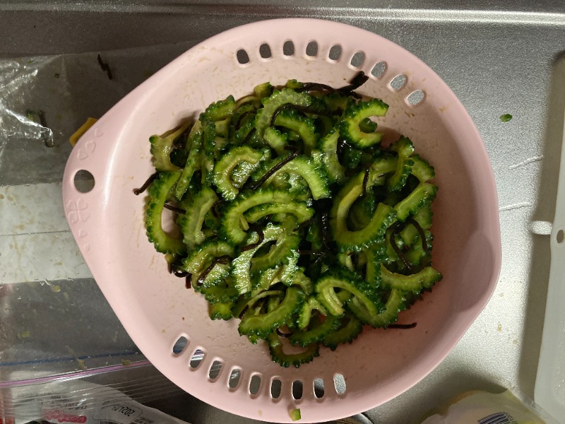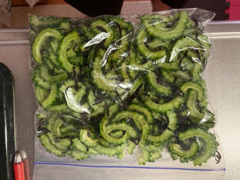 ゴーヤ独特の青い香りがしています、、