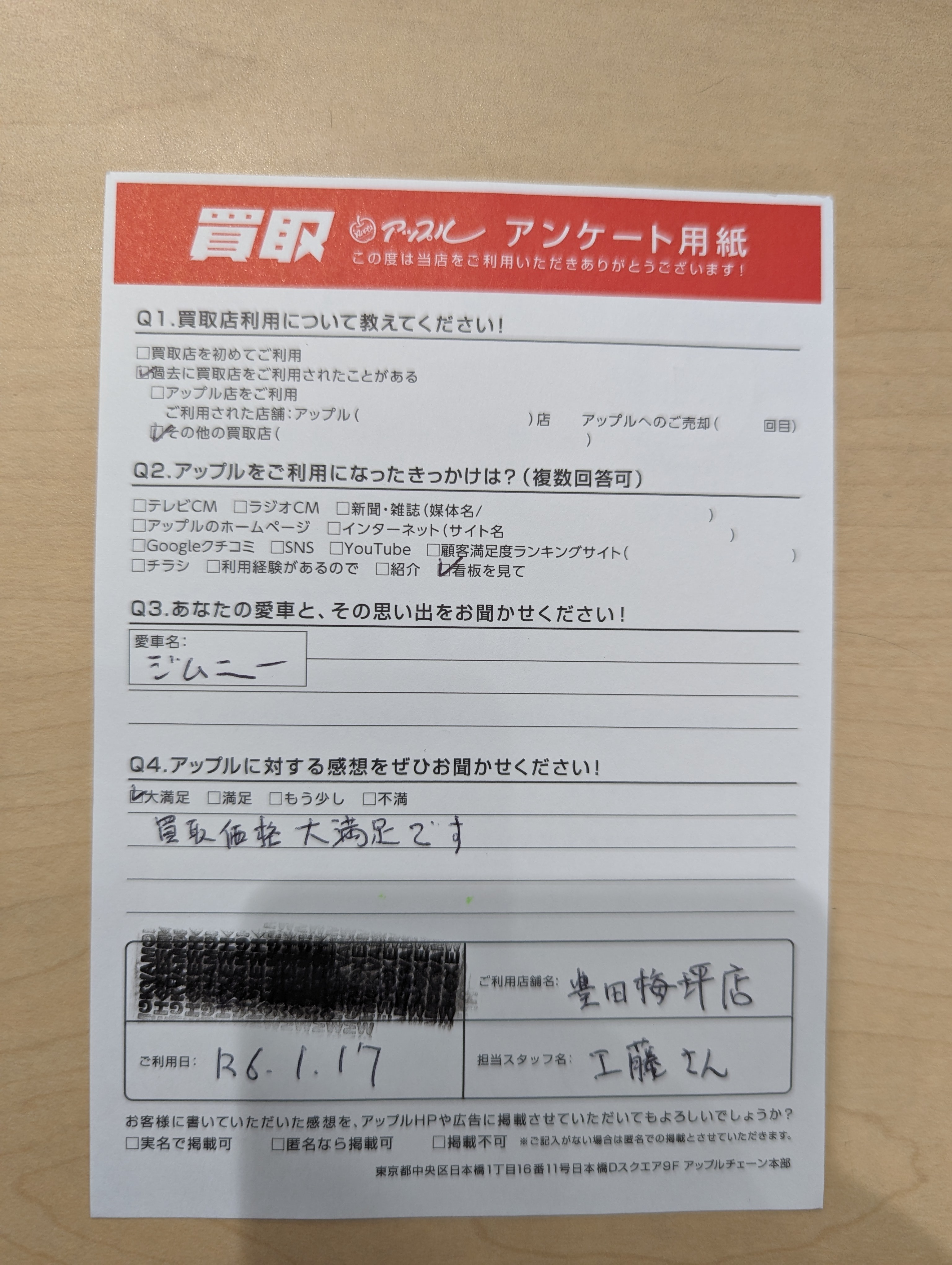 お車のご相談・ 査定だけでもOK! カンタン 入力 30秒 アップルがブランド買取始めました! お電話でも受付中! 受付時間09:30 ~ 18:00 0565-35-6767 お車のご相談・ 査定だけでもOK! カンタン 入力 30秒 アップルがブランド買取始めました! お電話でも受付中! 受付時間09:30 ~ 18:00 0565-35-6767 アップルがブランド買取始めました! お電話でも受付中! 受付時間09:30 ~ 18:00 0565-35-6767 店舗情報 在庫車 スタッフ紹介 ブログ お客様の声 キャンペーン お得 無料査定 click お客様の声 ご記入日: -/-/- 匿名様 車名:スズキ ジムニー 買取価格大満足です。 前へ 次へ お客様の声一覧を見る