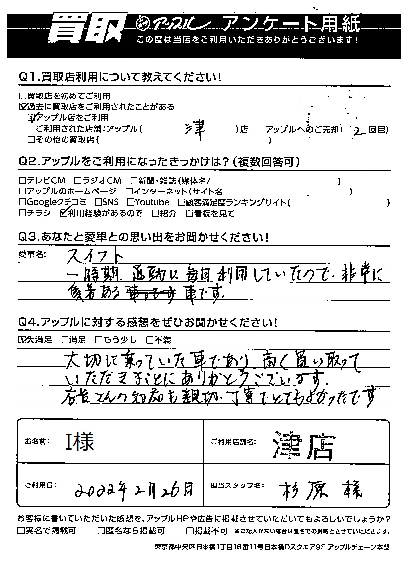 I様 車名:スズキ スイフト