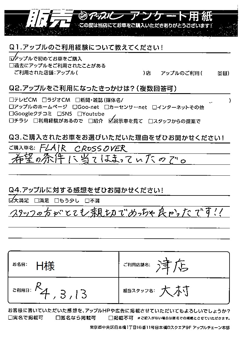 H様 車名:マツダ フレアクロスオーバー