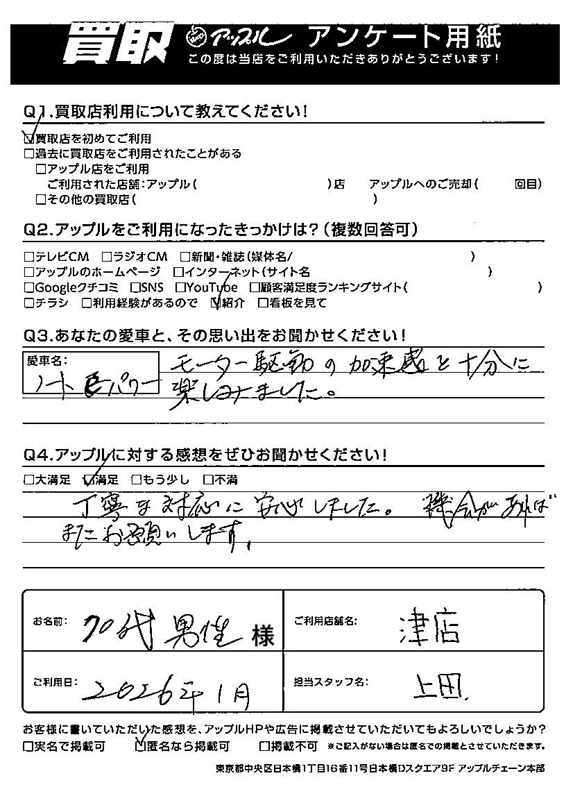 A.愛車名:ノートeパワー モーター駆動の加速感を十分に楽しみました。