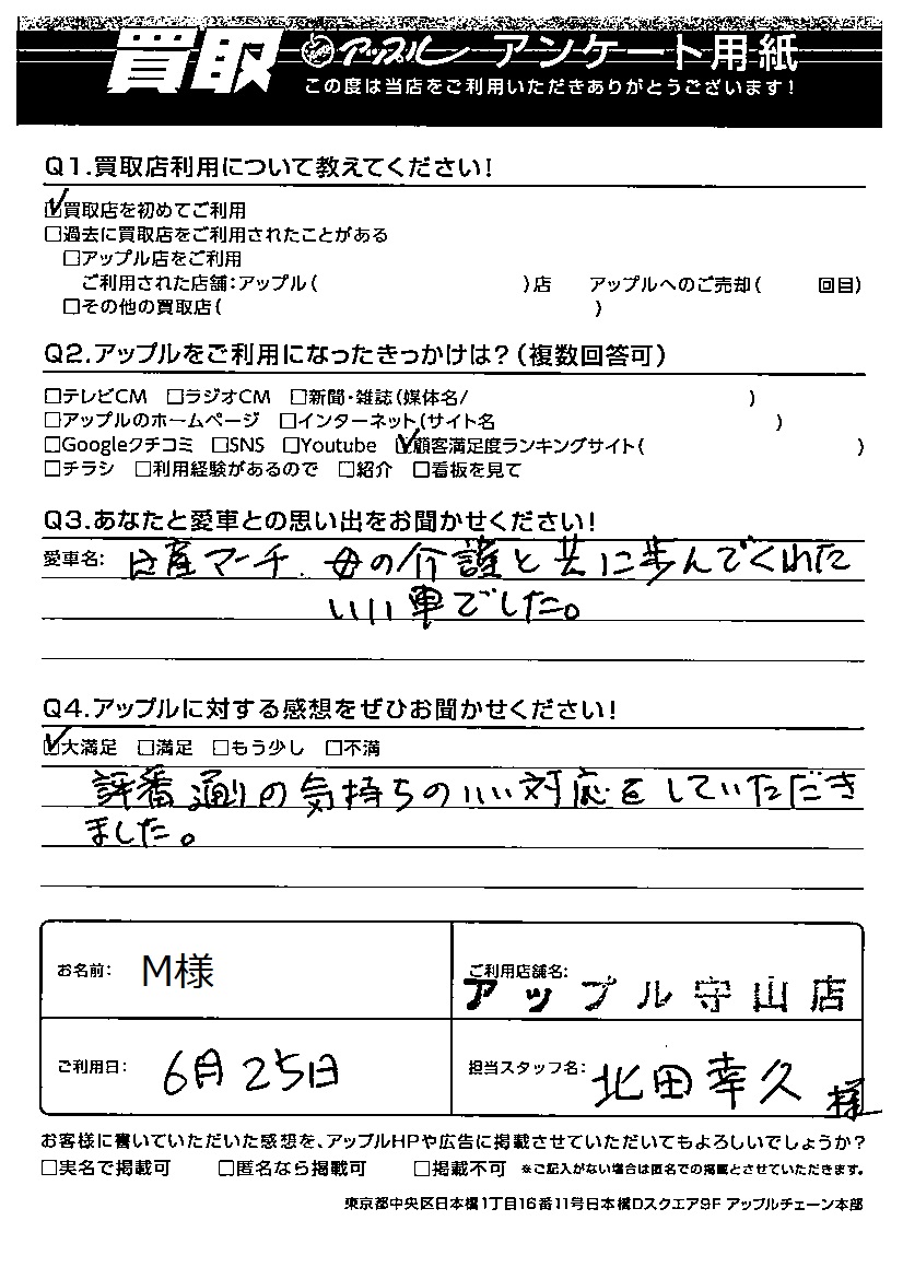 M様 車名:日産 マーチ