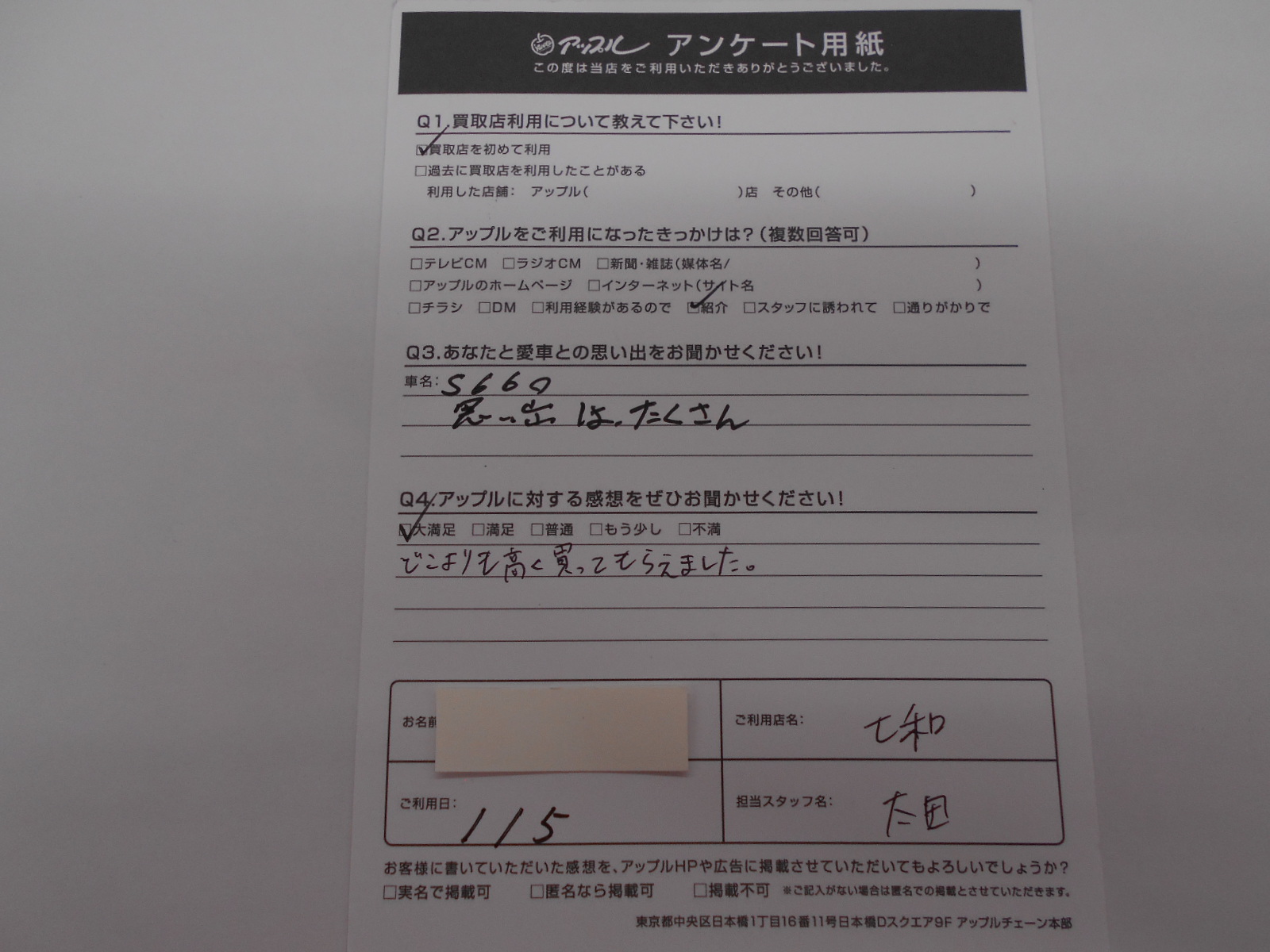 お車のご相談・ 査定だけでもOK! カンタン 入力 30秒 アップルがブランド買取始めました! お電話でも受付中! 受付時間10:00 ~ 19:00 0594-33-2200 お車のご相談・ 査定だけでもOK! カンタン 入力 30秒 アップルがブランド買取始めました! お電話でも受付中! 受付時間10:00 ~ 19:00 0594-33-2200 アップルがブランド買取始めました! お電話でも受付中! 受付時間10:00 ~ 19:00 0594-33-2200 店舗情報 在庫車 スタッフ紹介 ブログ お客様の声 キャンペーン 無料査定 click お客様の声 ご記入日: 2021/01/05 匿名希望S660様 どこよりも高く買ってもらいました。 前へ 次へ お客様の声一覧を見る