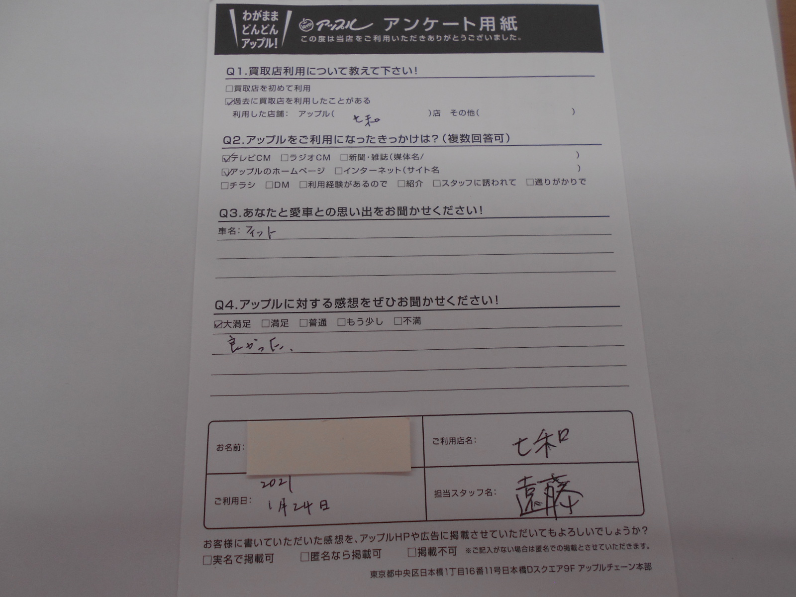 お車のご相談・ 査定だけでもOK! カンタン 入力 30秒 アップルがブランド買取始めました! お電話でも受付中! 受付時間10:00 ~ 19:00 0594-33-2200 お車のご相談・ 査定だけでもOK! カンタン 入力 30秒 アップルがブランド買取始めました! お電話でも受付中! 受付時間10:00 ~ 19:00 0594-33-2200 アップルがブランド買取始めました! お電話でも受付中! 受付時間10:00 ~ 19:00 0594-33-2200 店舗情報 在庫車 スタッフ紹介 ブログ お客様の声 キャンペーン 無料査定 click お客様の声 ご記入日: 2021/01/24 徳目希望フィット様 良かった。 前へ 次へ お客様の声一覧を見る