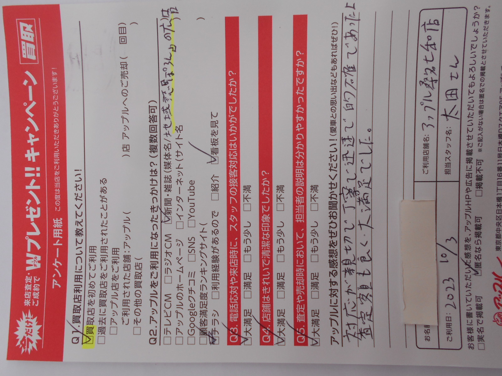 お車のご相談・ 査定だけでもOK! カンタン 入力 30秒 アップルがブランド買取始めました! お電話でも受付中! 受付時間10:00 ~ 19:00 0594-33-2200 お車のご相談・ 査定だけでもOK! カンタン 入力 30秒 アップルがブランド買取始めました! お電話でも受付中! 受付時間10:00 ~ 19:00 0594-33-2200 アップルがブランド買取始めました! お電話でも受付中! 受付時間10:00 ~ 19:00 0594-33-2200 店舗情報 在庫車 スタッフ紹介 ブログ お客様の声 キャンペーン 無料査定 click お客様の声 ご記入日: 2023/10/03 匿名様 対応が親切で丁寧で迅速で的確であった。査定額も良く大満足でした。 前へ 次へ お客様の声一覧を見る