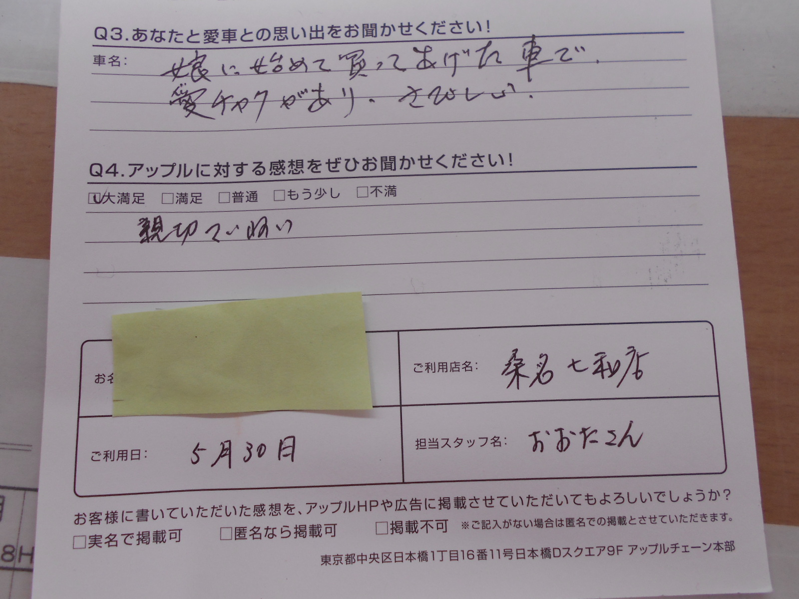 ご記入日: 2019/05/30
