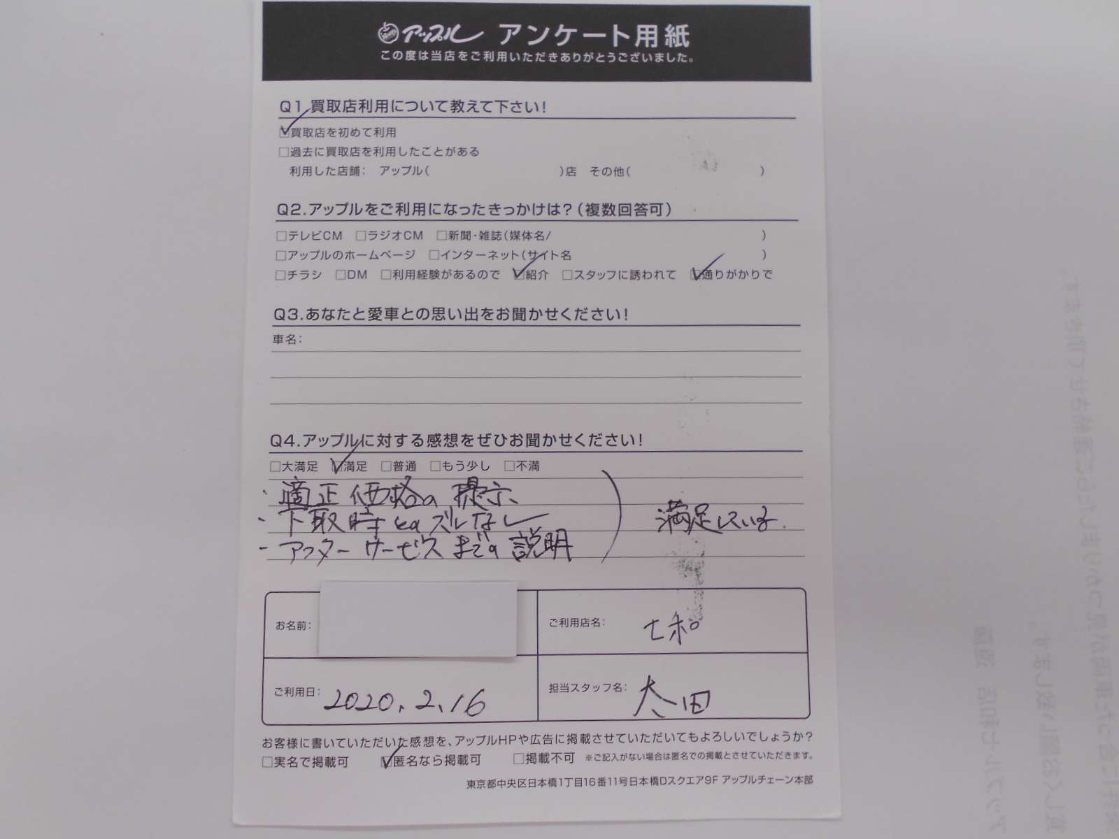 お車のご相談・ 査定だけでもOK! カンタン 入力 30秒 アップルがブランド買取始めました! お電話でも受付中! 受付時間10:00 ~ 19:00 0594-33-2200 お車のご相談・ 査定だけでもOK! カンタン 入力 30秒 アップルがブランド買取始めました! お電話でも受付中! 受付時間10:00 ~ 19:00 0594-33-2200 アップルがブランド買取始めました! お電話でも受付中! 受付時間10:00 ~ 19:00 0594-33-2200 店舗情報 在庫車 スタッフ紹介 ブログ お客様の声 キャンペーン 無料査定 click お客様の声 ご記入日: 2020/02/16 匿名希望様 適正価格の提示、下取り車とのズレなし、アフターサービスまでの説明満足している。 前へ 次へ お客様の声一覧を見る