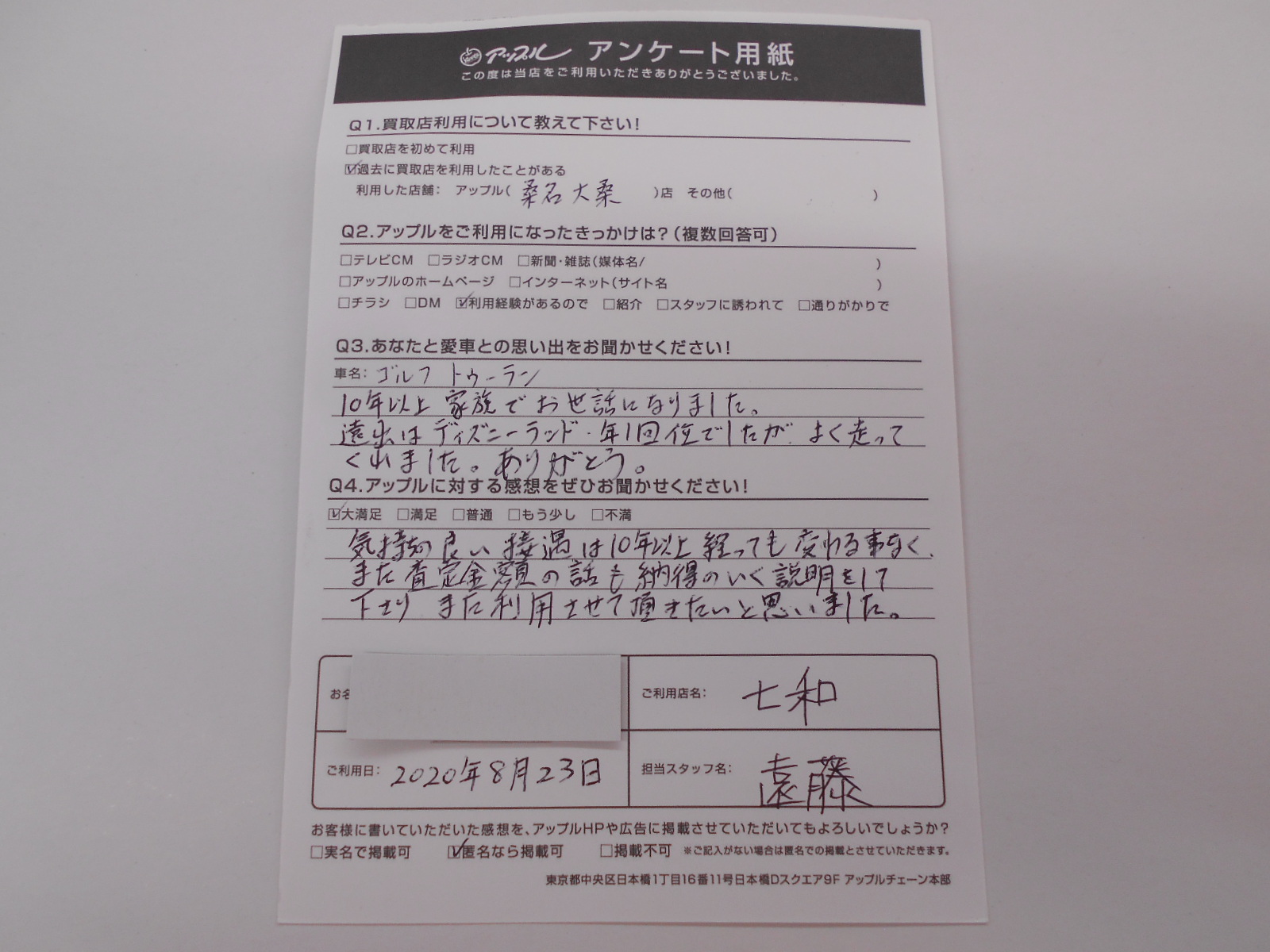 お車のご相談・ 査定だけでもOK! カンタン 入力 30秒 アップルがブランド買取始めました! お電話でも受付中! 受付時間10:00 ~ 19:00 0594-33-2200 お車のご相談・ 査定だけでもOK! カンタン 入力 30秒 アップルがブランド買取始めました! お電話でも受付中! 受付時間10:00 ~ 19:00 0594-33-2200 アップルがブランド買取始めました! お電話でも受付中! 受付時間10:00 ~ 19:00 0594-33-2200 店舗情報 在庫車 スタッフ紹介 ブログ お客様の声 キャンペーン 無料査定 click お客様の声 ご記入日: 2020/08/23 匿名希望ゴルフトゥーラン様 車名:フォルクスワーゲン ゴルフトゥーラン 気持ちの良い接遇は10年以上経っても変わる事なく、また査定金額の話も納得のいく説明をして下さりまた利用させて頂きたいと思いました。 前へ 次へ お客様の声一覧を見る