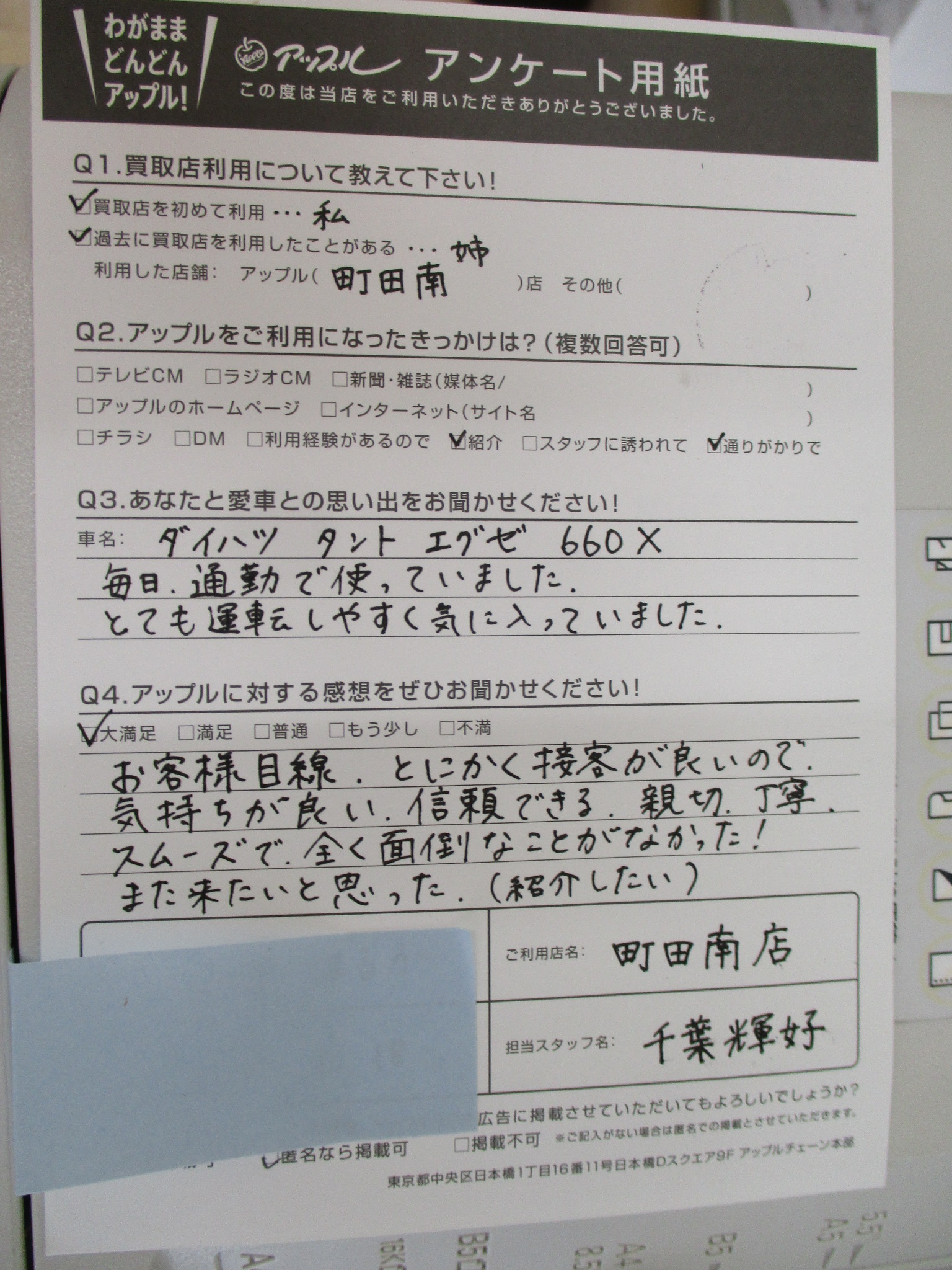 東京都 N、H様 車名:ダイハツ タントエグゼ