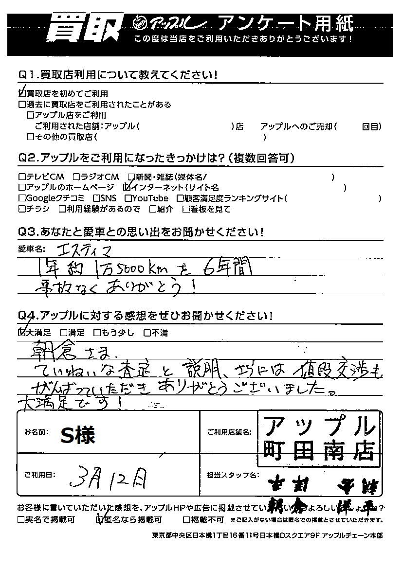 S様 車名:トヨタ エスティマ