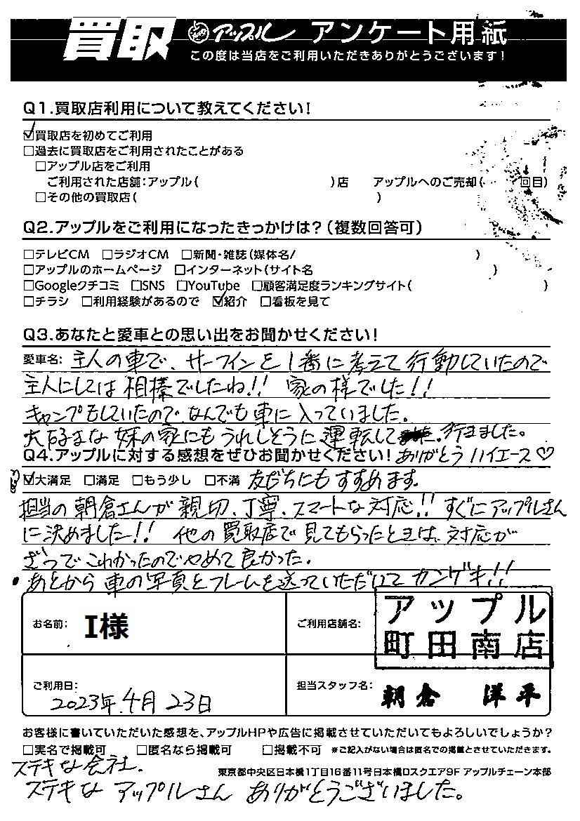 ご利用日:2023年4月23日 担当:朝倉