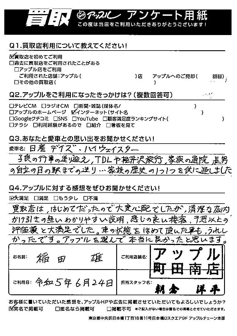 ご利用日:令和5年6月24日 担当:朝倉