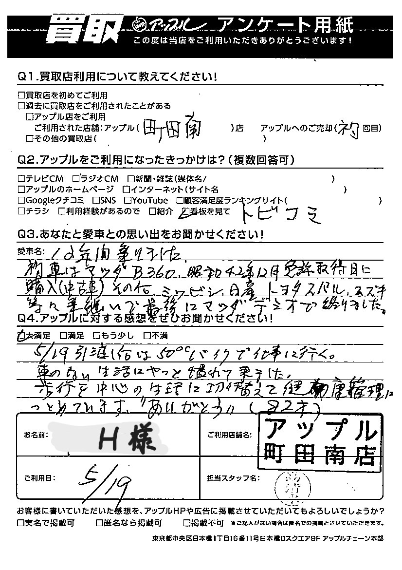 ご利用日:2023年5月19日 担当:高清水