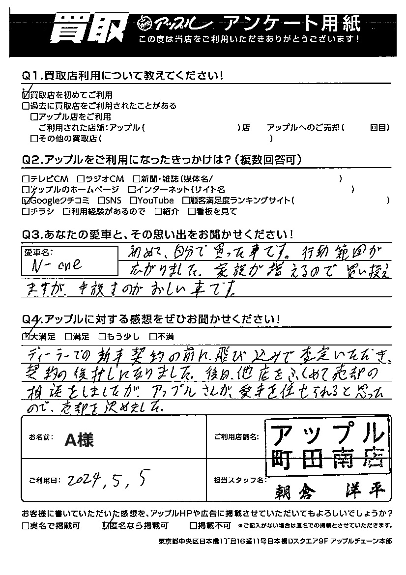 ご利用日:2024年5月5日 担当:朝倉洋平