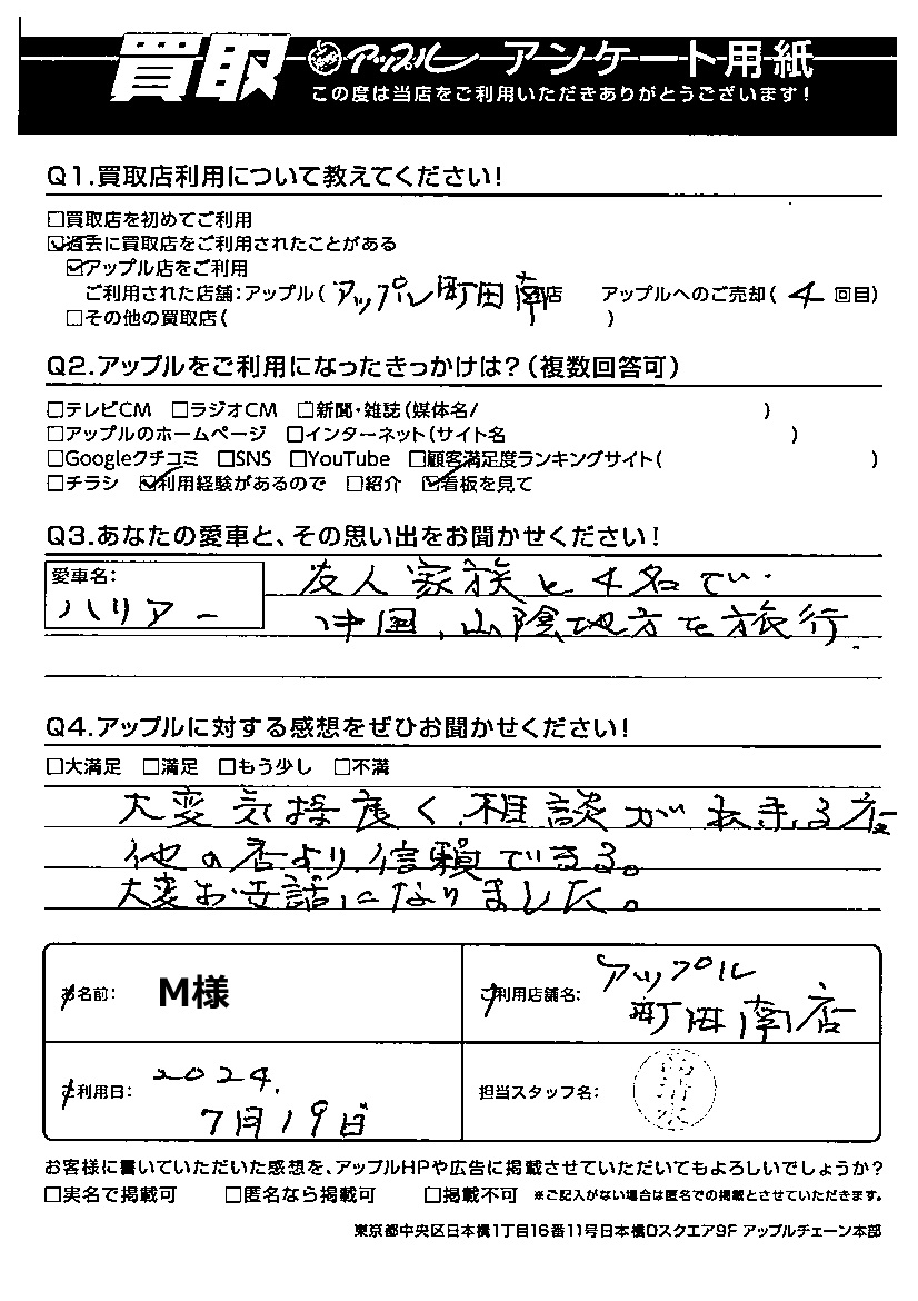 ご利用日:2024/07/19 M様