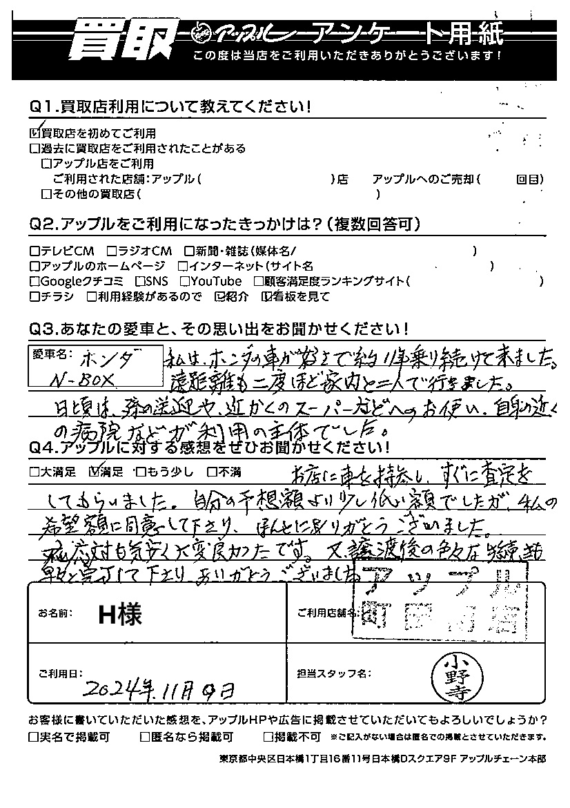 ご利用日:2024/11/09 H 様