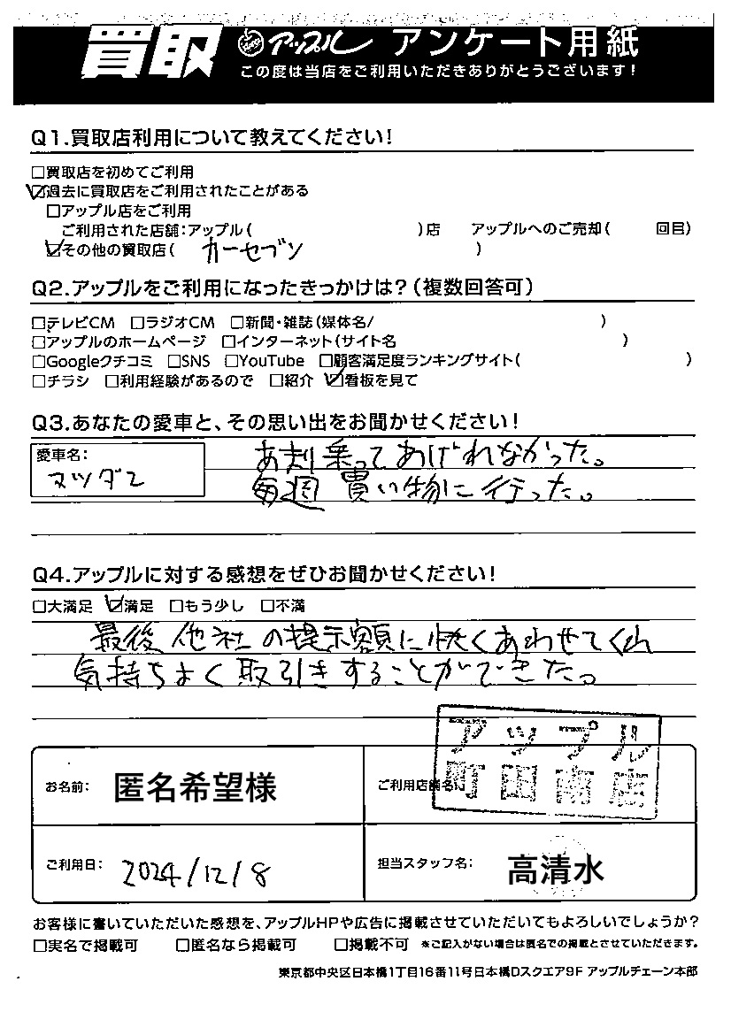 ご利用日:2024/12/08 匿名希望 様