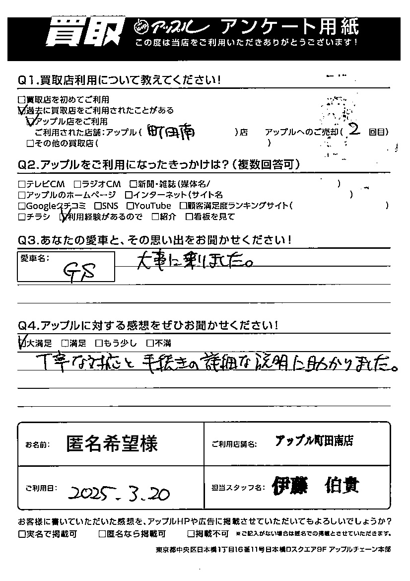 ご利用日:2024/03/20 匿名希望 様