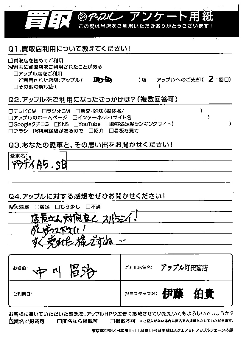 ご愛車 アウディA5 スポーツバック 担当:伊藤