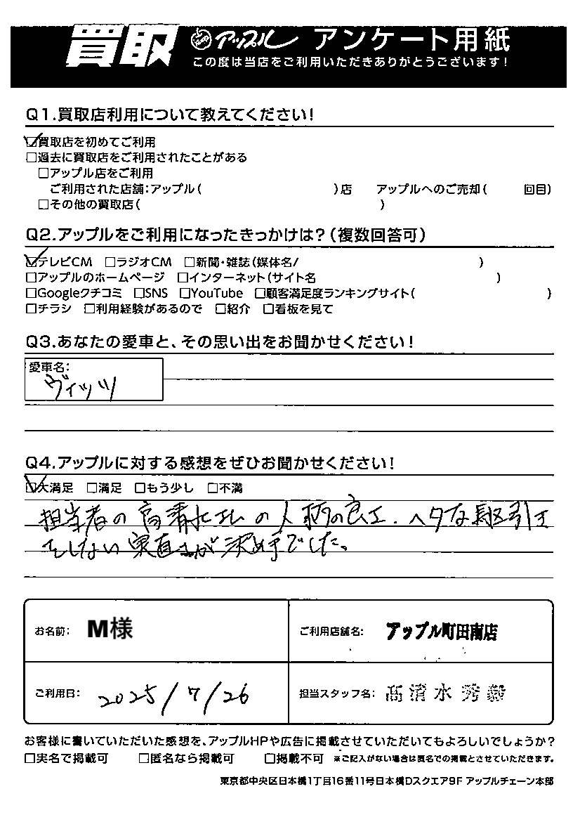 M様 車名:トヨタ ヴィッツ