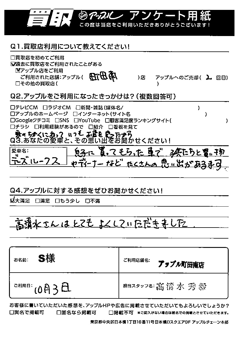 ご利用日:2025/10/03 S 様
