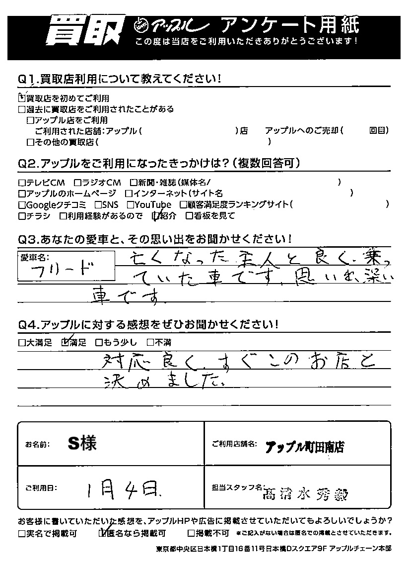 S様 車名:ホンダ フリード(H28年9月以降のハイブリッド含む)