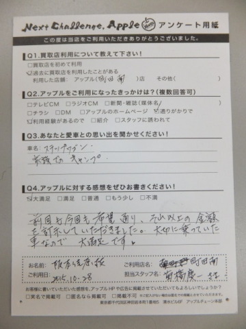 お車のご相談・ 査定だけでもOK! カンタン 入力 30秒 アップルがブランド買取始めました! お電話でも受付中! 受付時間10:00 ~19:00 042-788-4511 お車のご相談・ 査定だけでもOK! カンタン 入力 30秒 アップルがブランド買取始めました! お電話でも受付中! 受付時間10:00 ~19:00 042-788-4511 アップルがブランド買取始めました! お電話でも受付中! 受付時間10:00 ~19:00 042-788-4511 店舗情報 在庫車 スタッフ紹介 ブログ お客様の声 キャンペーン お得 無料査定 click お客様の声 ご記入日: 2015/10/28 K・S様 前回も今回も希望通り、それ以上の金額を提示して頂きました。大切に乗っていた車なので大満足です。 前へ 次へ お客様の声一覧を見る