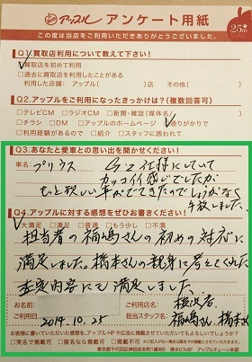担当者の福嶋さんの初めの対応に満足しました。