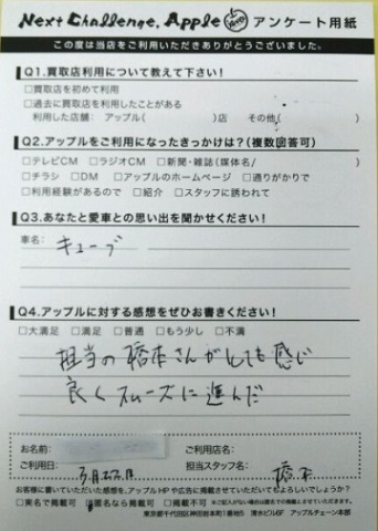 お車のご相談・ 査定だけでもOK! カンタン 入力 30秒 アップルがブランド買取始めました! お電話でも受付中! 受付時間9:30 ~ 18:30 045-430-5123 お車のご相談・ 査定だけでもOK! カンタン 入力 30秒 アップルがブランド買取始めました! お電話でも受付中! 受付時間9:30 ~ 18:30 045-430-5123 アップルがブランド買取始めました! お電話でも受付中! 受付時間9:30 ~ 18:30 045-430-5123 店舗情報 在庫車 スタッフ紹介 ブログ お客様の声 キャンペーン 無料査定 click お客様の声 ご記入日: 2015/03/22 S様 ■ご利用日時■ H27年3月22日■車種■ キューブ■担当者■ 橋本【アップルに対する感想をぜひお書きください】満足度★★★★★担当の橋本さんがとても感じよくスムーズに進んだ。 前へ 次へ お客様の声一覧を見る