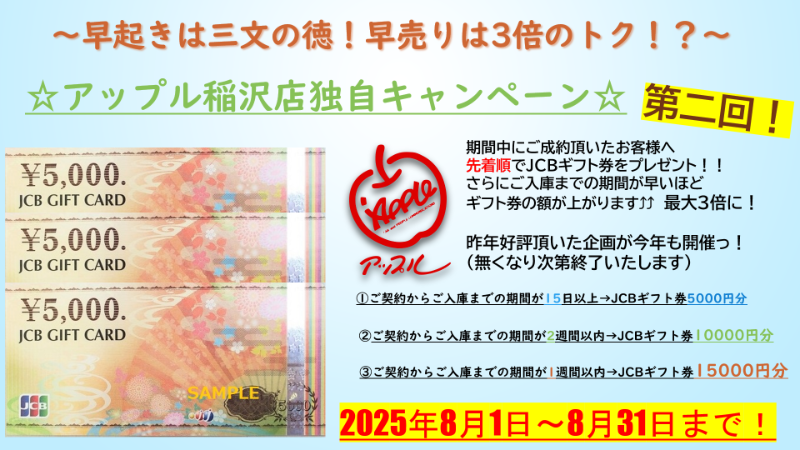 お車のご相談・ 査定だけでもOK! カンタン 入力 30秒 アップルがブランド買取始めました! お電話でも受付中! 受付時間10:00 ~ 19:00 0587-21-0040 お車のご相談・ 査定だけでもOK! カンタン 入力 30秒 アップルがブランド買取始めました! お電話でも受付中! 受付時間10:00 ~ 19:00 0587-21-0040 アップルがブランド買取始めました! お電話でも受付中! 受付時間10:00 ~ 19:00 0587-21-0040 店舗情報 在庫車 スタッフ紹介 ブログ お客様の声 キャンペーン 無料査定 click 最新記事一覧 月別アーカイブ 2026年04月(3)2026年03月(2)2026年02月(1)2026年01月(4)2025年12月(4)2025年11月(6)2025年10月(4)2025年09月(7)2025年08月(8)2025年07月(8)2025年06月(2)2025年05月(5)2025年04月(6)2025年03月(3)2025年02月(1)2025年01月(7)2024年12月(2)2024年11月(4)2024年10月(2)2024年09月(4)2024年08月(4)2024年07月(6)2024年06月(1)2024年05月(4)2024年04月(5)2024年03月(5)2024年02月(2)2024年01月(5)2023年12月(4)2023年11月(4)2023年10月(4)2023年09月(6)2023年08月(6)2023年07月(9)2023年06月(7)2023年05月(4)2023年04月(8)2023年03月(4)2023年02月(3)2023年01月(6)2022年12月(11)2022年11月(8)2022年10月(9)2022年09月(11)2022年08月(9)2022年07月(14)2022年06月(13)2022年05月(6)2022年04月(8)2022年03月(8)2022年02月(9)2022年01月(12)2021年12月(12)2021年11月(11)2021年10月(9)2021年09月(10)2021年08月(14)2021年07月(15)2021年06月(16)2021年05月(11)2021年04月(8)2021年03月(7)2021年02月(8)2021年01月(9)2020年12月(8)2020年11月(7)2020年10月(14)2020年09月(15)2020年08月(17)2020年07月(15)2020年06月(16)2020年05月(13)2020年04月(15)2020年03月(13)2020年02月(17)2020年01月(14)2019年12月(17)2019年11月(13)2019年10月(7)2019年09月(8)2019年08月(10)2019年07月(9)2019年06月(12)2019年05月(16)2019年04月(6)2019年03月(6)2019年02月(12)2019年01月(3)2018年12月(8)2018年11月(8)2018年10月(19)2018年09月(25)2018年08月(22)2018年07月(27)2018年06月(24)2018年05月(16)2018年04月(16)2018年03月(9)2018年02月(5)2018年01月(10)2017年12月(8)2017年11月(5)2017年10月(10)2017年09月(4)2017年08月(7)2017年07月(10)2017年06月(9)2017年05月(10)2017年04月(8)2017年03月(4)2017年02月(7)2017年01月(10)2016年12月(13)2016年11月(8)2016年10月(6)2016年09月(6)2016年08月(5)2016年07月(12)2016年06月(3)2016年05月(5)2016年04月(3)2016年03月(1)2016年02月(1)2016年01月(2)2015年12月(2)2015年11月(3)2015年10月(2)2015年09月(4)2015年08月(4)2015年07月(4)2015年06月(4)2015年05月(4)2015年04月(4)2015年03月(2)2015年02月(4)2015年01月(4)2014年12月(5)2014年11月(9)2014年10月(4)2014年09月(8)2014年08月(12)2014年07月(8)2014年06月(8)2014年05月(7)2014年04月(5)2014年02月(3)2014年01月(3)2013年12月(1)2013年11月(2)2013年09月(1) 31-40/1174件中 [ 未分類 ] 2025/09/01(月) 10:30 ☆半年に一度のチャンス!「いいものもらえるキャンペーン」開催☆ 皆様こんにちは☆アップル稲沢店の前川です♪本日のブログは大変お得なキャンペーンのお知らせです!↓↓↓↓↓↓↓↓↓↓↓↓↓↓↓↓↓↓↓*半年に一度のチャンス!「いいものもらえるキャンペーン」開催*開催期間・9月1日~10月31日ご成約いただいたお客様の中から抽選で総計326名様に豪華プレゼント… [ 未分類 ] 2025/08/30(土) 11:23 ☆うれしい頂き物☆ 皆様こんにちは☆アップル稲沢店の前川です!8月も残り僅か、、、ですがこの暑さ(@_@)本当に残暑というより夏ど真ん中といった気温ですね。。。。皆様熱中症や体調の不調にはお気をつけ下さいませ☆さて、先日いつも当店をご利用いただいているM様より差し入れを頂きました(^^♪M様いつもお気遣い頂きあ… [ 未分類 ] 2025/08/26(火) 11:30 ☆うなぎ☆ 皆様こんにちは☆アップル稲沢店の前川です♪本日の稲沢店は曇りですが暑い!!すこし雨がぱらついたお陰でジメジメ感もMAX(@_@)まだまだ残暑ですね。。。。さて、先日そんな暑さに負けないように『うなぎ』を食べてきました~☆行かせて頂きましたのは『あつた蓬莱軒』さんです!言わずと知れた名店☆お味… [ 未分類 ] 2025/08/23(土) 14:00 ☆夏休み☆ 皆様こんにちは☆アップル稲沢店の前川です♪8月も終わりに近づいていますが、まだまだ暑いですね(;´・ω・)熱中症には十分お気をつけ下さいませ!さて、本日のブログは『夏休み』☆皆様はお盆休みいかがお過ごしされたでしょうか?私は、定番で妻の実家へ帰省させて頂いてました!1日目は長男と釣りへ行って… [ 未分類 ] 2025/08/17(日) 09:51 ☆本日より通常営業でございます!☆ 皆様こんにちは☆アップル稲沢店の前川です♪本日までお盆休みという方も多いのではないでしょうか??皆様お盆はどう過ごされましたでしょうか??私たちのお盆休みは追々ブログにて綴らせて頂こうと思っております!さて本題ですが、アップル稲沢店は昨日迄お盆休みを頂いておりました☆本日8/17㈰、午前10… [ 未分類 ] 2025/08/09(土) 16:30 ☆夏季休業のお知らせ☆ 皆様こんにちは☆アップル稲沢店の前川です♪本日のブログは『夏季休業のお知らせ』です(*^-^*)アップル稲沢店は、明日8/10㈰~8/16㈯まで夏季休業を頂きます!!8/17㈰AM10時より通常営業となります☆皆様にはご不便をおかけいたしますが、何卒ご理解いただきますようお願い申し上げます。… [ 未分類 ] 2025/08/07(木) 14:36 8/10(日)から8/16(土)までは夏季休業となります。 皆さまこんにち
