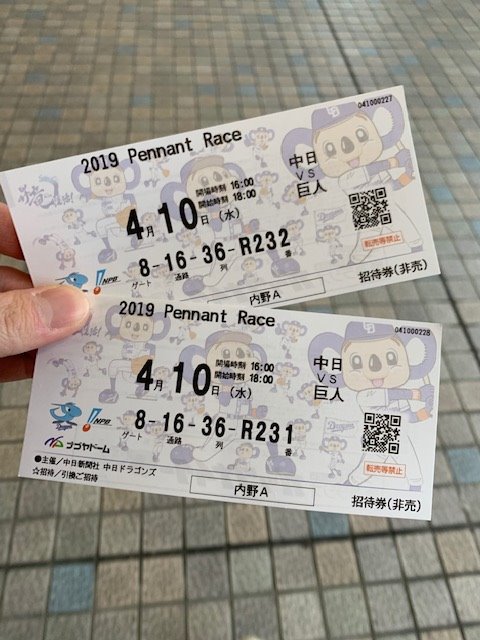 先日会社より中日VS巨人戦のチケットを