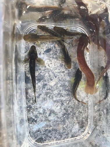 そして、近くの川で後輩スタッフの子が魚を捕まえ始めました♪